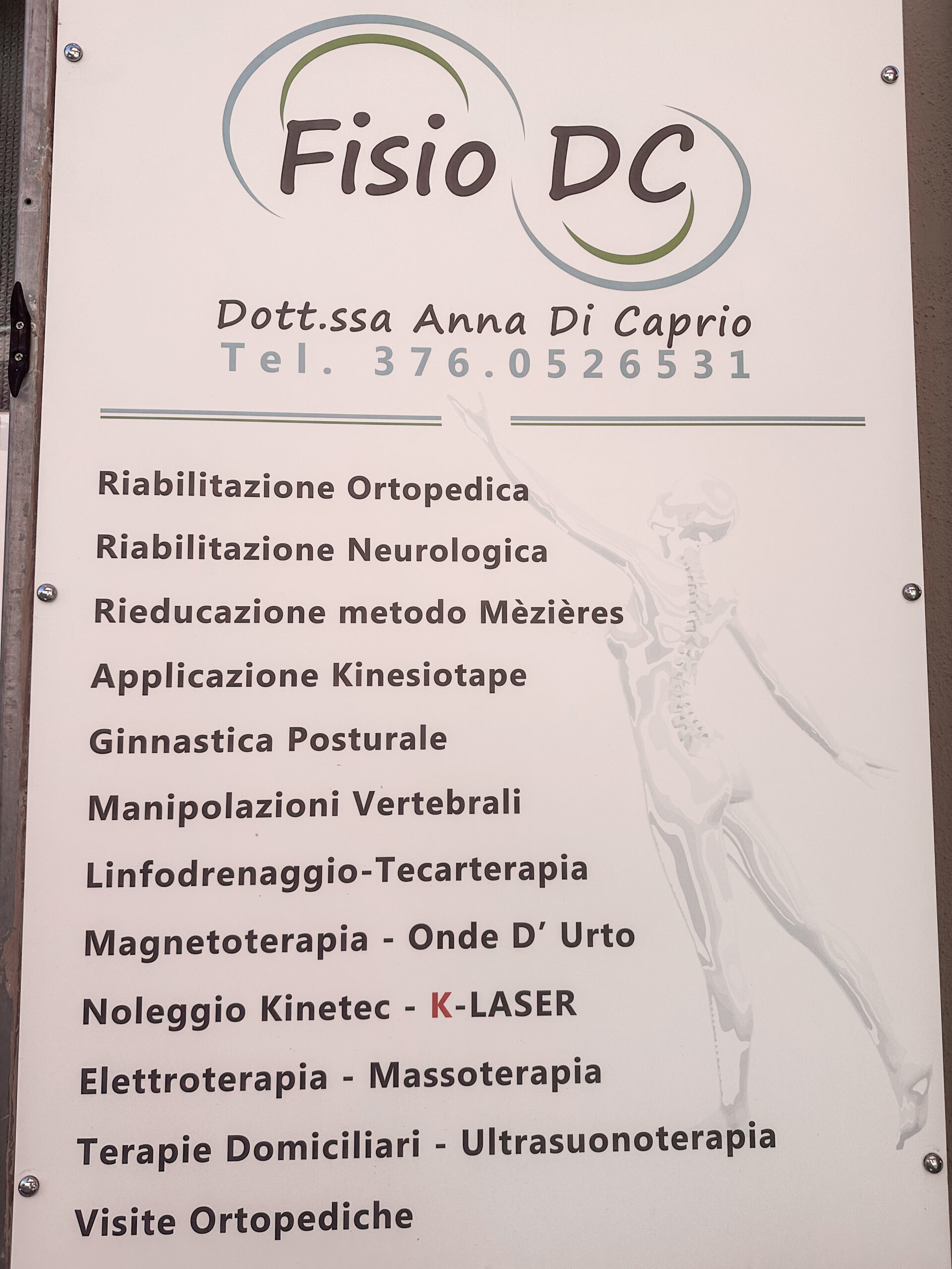 FisioDC, studio di fisioterapia della dr.ssa Anna Di Caprio, offre trattamenti personalizzati per esigenze ortopediche e neurologiche, sia manuali che con tecnologie avanzate, in studio o a domicilio. Ogni mese vengono effettuate visite ortopediche e esami baropodometrici. La nostra priorità è sempre garantire gentilezza, disponibilità e professionalità per il benessere dei nostri pazienti.
